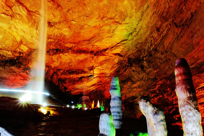所以,導(dǎo)游會(huì)提醒你別把手放入水里,小心娃娃魚和你握手!蕩舟響水河,河道曲折,空谷幽邃,水深悠遠(yuǎn),岸危穹高,忽仰忽傾,若明若暗,凝目高遠(yuǎn)處則是朦朦膿膿,恍若回到混沌如初的遠(yuǎn)古時(shí)代,充滿著神秘誘惑……響水河沿途有很多神奇的洞中景觀,如龍王金盔、海貝浮空、海螺吹天、隱龍峽、插香臺(tái)、天仙橋等,都很值得觀賞和品味。